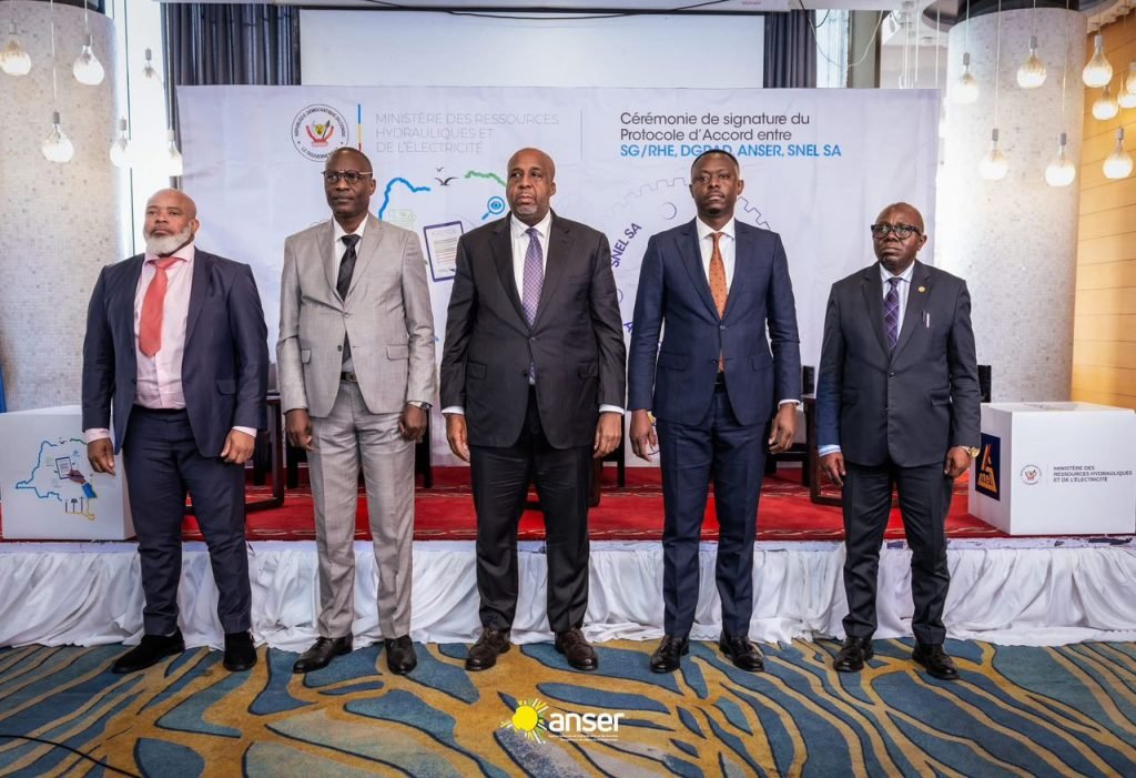 Le protocole d’accord signé entre le Secrétariat Général aux Ressources Hydrauliques et Électricité, la Direction Générale des Recettes Administratives, Judiciaires, Domaniales et de Participation (DGRAD), l’Agence Nationale de l’Électrification et des Services Énergétiques en milieux Rural et périurbain (ANSER) et la Société Nationale d’Électricité (SNEL SA) établit désormais des mécanismes harmonisés pour la déclaration, la perception et le contrôle de la redevance sur la consommation d’électricité en haute et moyenne tension.